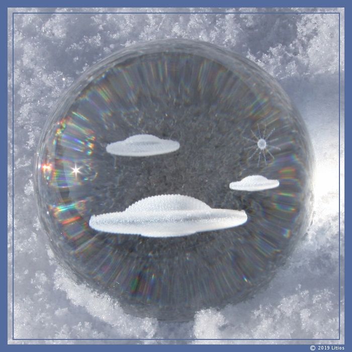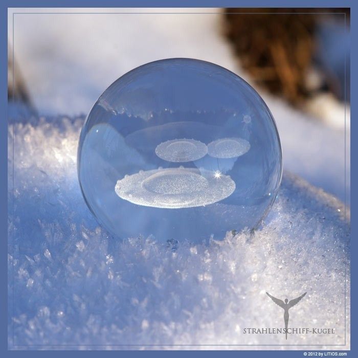 Hochwertige, kristallklare Glaskugel mit Laserfigur “Drei Sternenschiffe”.