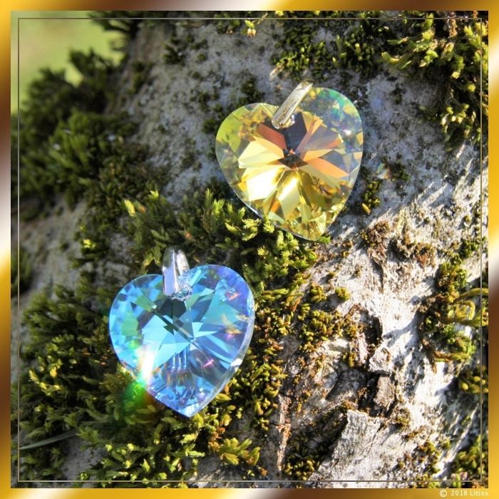 Am oberen Ende des Anhängers ist eine Öse angebracht, die zur Aufhängung dient. Die silberfarbene Öse (blaues Kristall-Herz) besteht aus rhodiniertem Echtsilber (925) und die goldfarbene Öse (goldenes Kristall-Herz) besteht aus vergoldetem Echtsilber (925).
