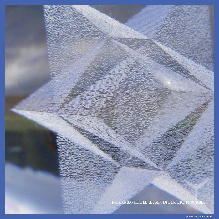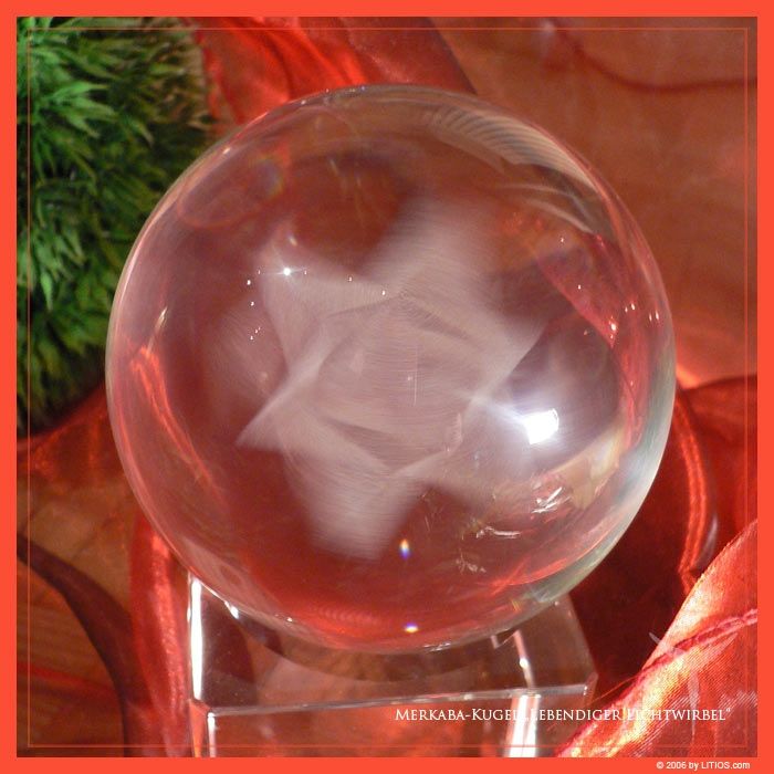 Hochwertige kristallklare Glaskugel mit Laserfigur „Merkaba“.