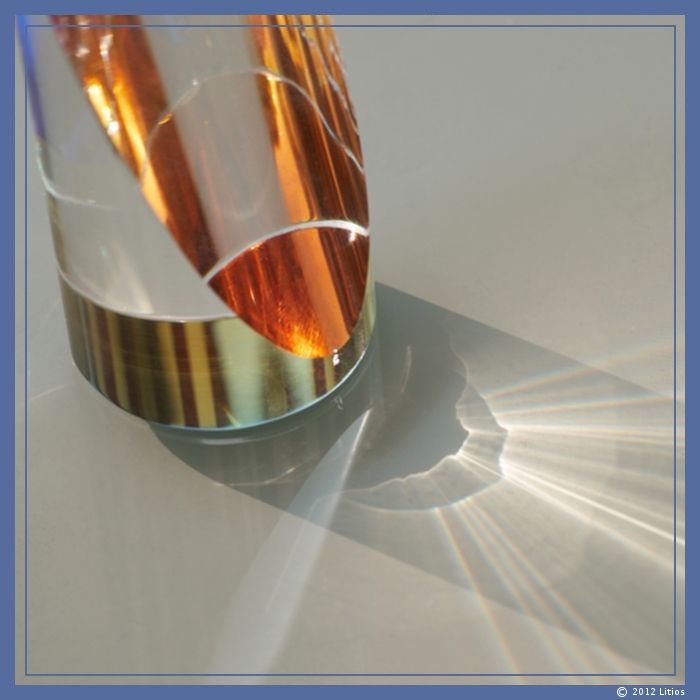 Hochwertiger, abgeschrägter Glas-Stab mit einer Farbbeschichtung am Boden. Der Stab ist unten abgeflacht und zum Stellen geeignet.
